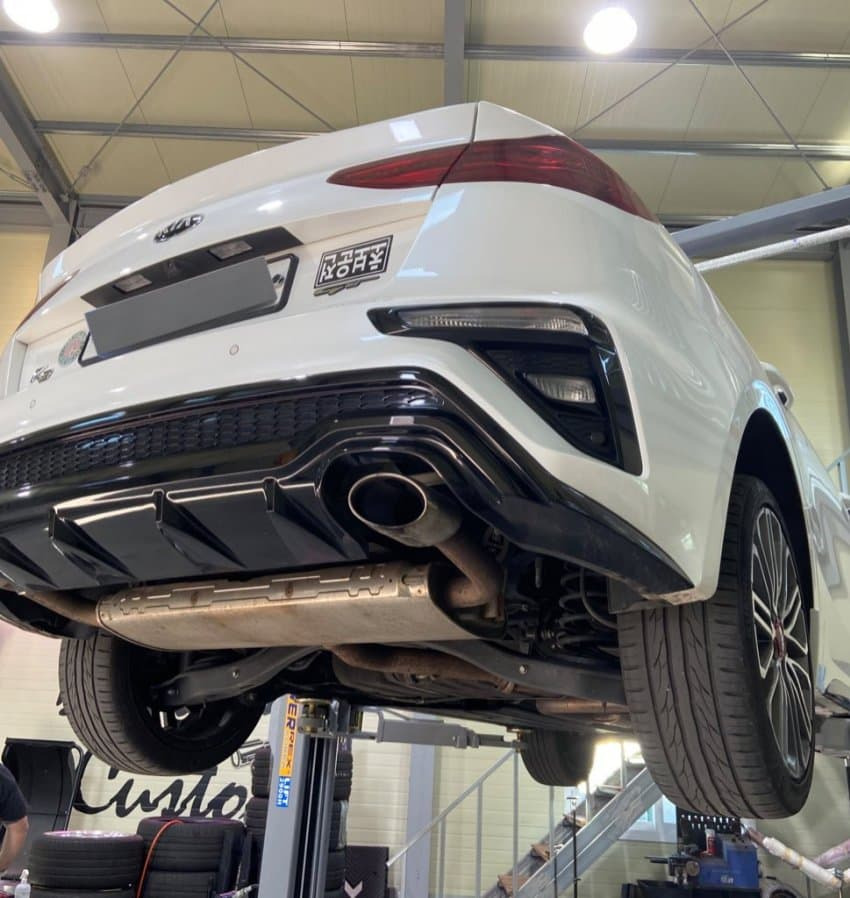- K3GT와 형제 차량인 i30N라인의 중간소음기 부품을 교체하는 중통 튜닝