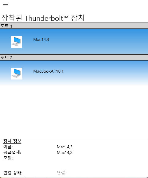 - 윈도우-맥 연결의 경우에 썬더볼트 4 케이블을 뽑으면 완전 전원 종료 후 재부팅 이전까지 기기 인식 불가