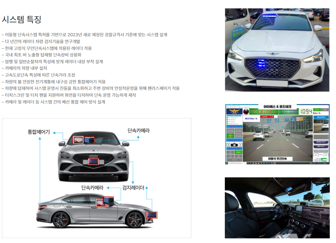 나라장터 입찰 결과를 조회해보니, "건아정보기술 주식회사" 와 "주식회사 아이에스앤로드테크"에서 순찰차 탑재형 교통단속장비를 제조하는것으로 보입니다. 두 회사의 단속장비를 찾아봅시다.