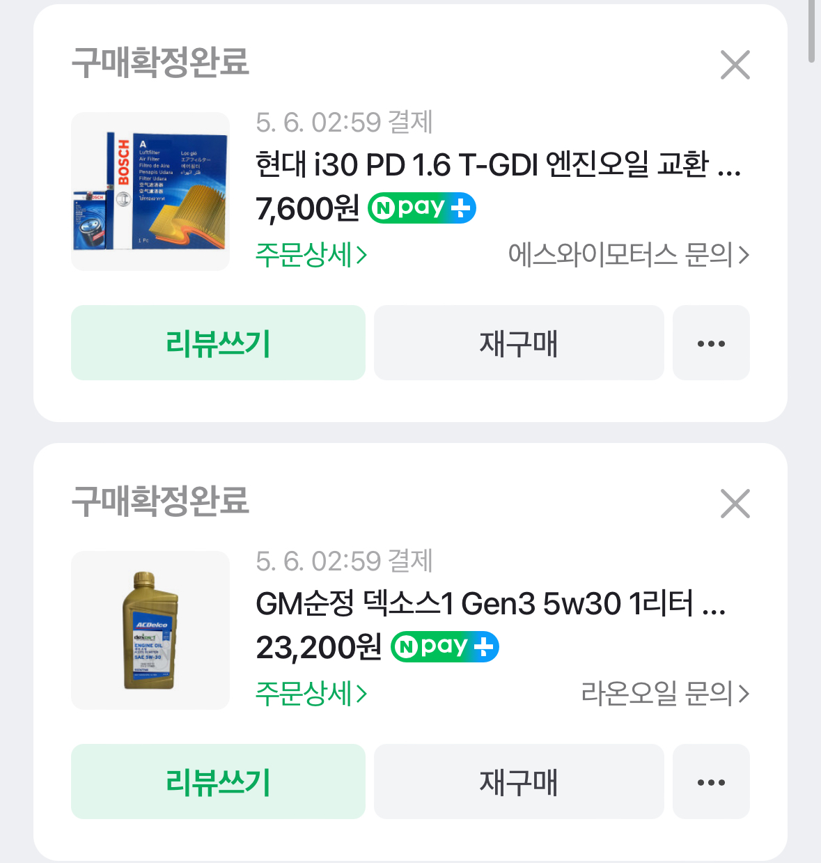 총 교환비용은 필터/오일 35000원(배송비 포함)+ 공임나라 표준공임 19000원으로 5만원대로 교체하였습니다.